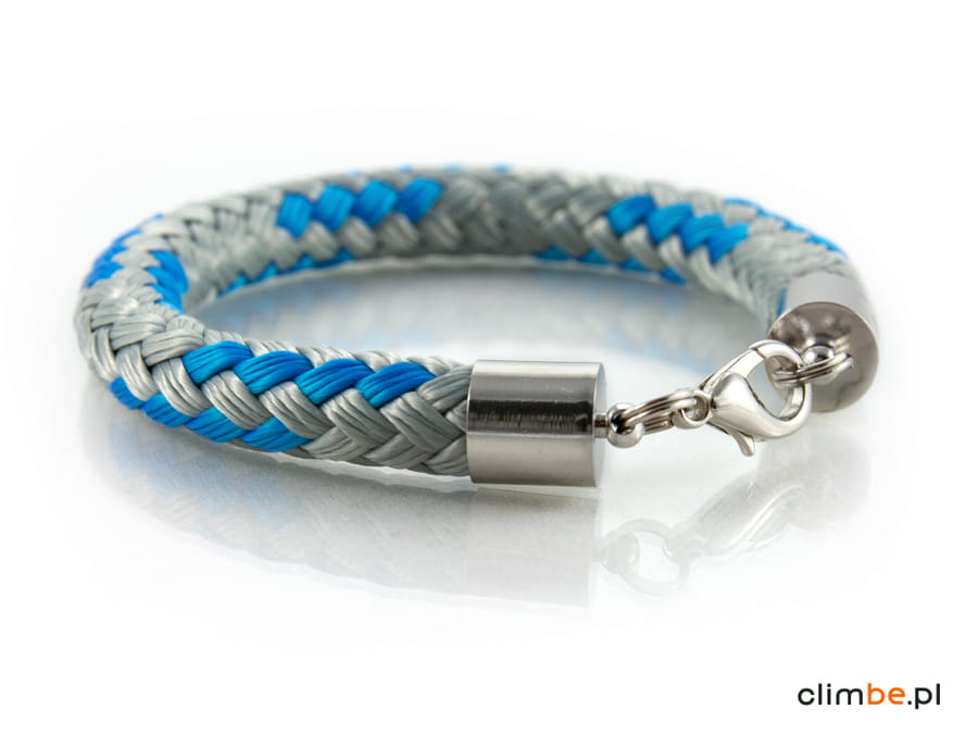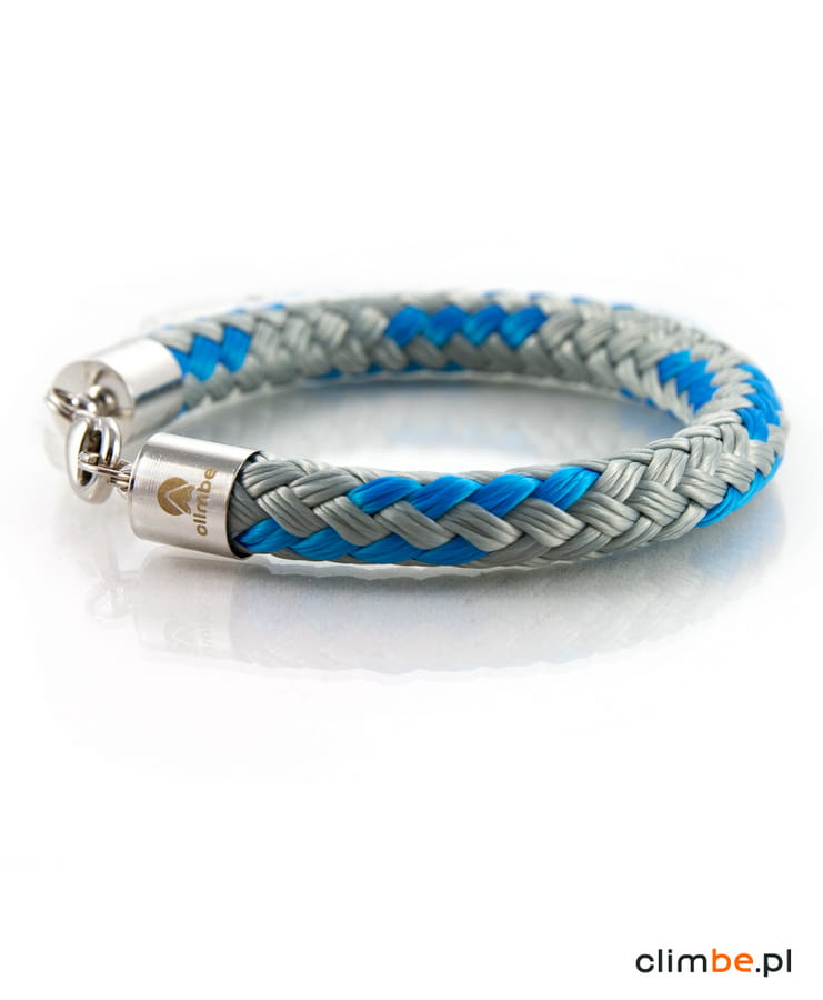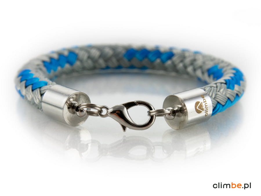Bransoletka Climbe Monsun o z harmonizowanych barwach. Kolor niebieski, ubarwiający bransoletkę, ma przypominać, że nawet po najgorszej burzy zawsze przychodzi pogodny dzień. Bransoletka wykonana z liny żeglarskiej o średnicy 8 mm. Wyposażona w zapięcie z karabińczykiem. Nowoczesna, elegancka i przełamująca wszystkie schematy. Zachwyca kolorem, kompozycją, kształtem i jest obiektem pożądania wszystkich miłośników dizajnu.