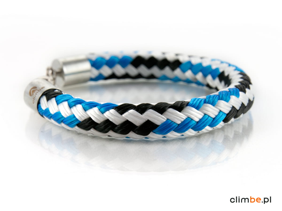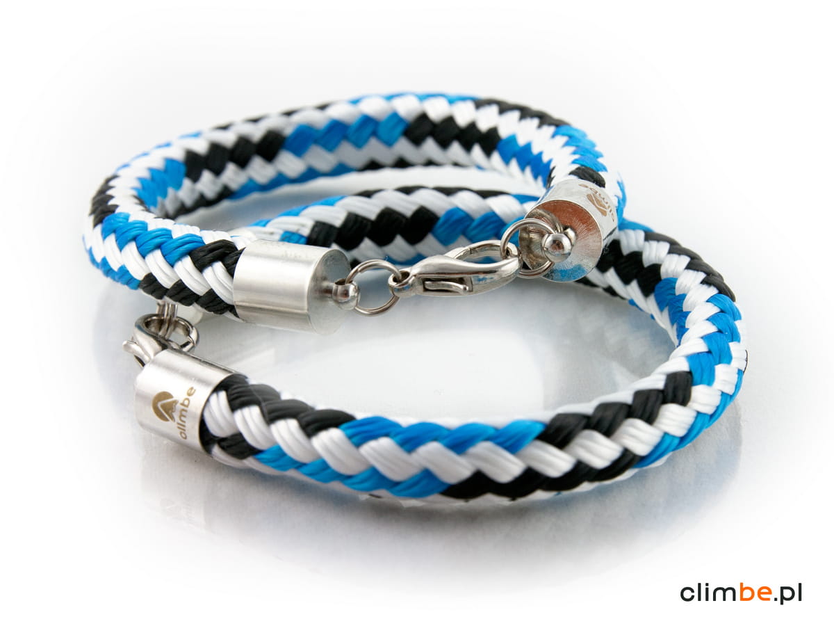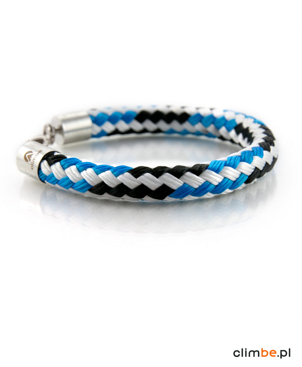 Bransoletka Climbe Jet Stream. Agresywna i wyrazista niczym prąd strumieniowy. Wykonana z liny żeglarskiej o średnicy 8 mm. Wyposażona w zapięcie z karabińczykiem. Bransoletka jest nowoczesna, elegancka i przełamująca wszystkie schematy. Zachwyca kolorem, kształtem i jest obiektem pożądania wszystkich miłośników dizajnu.