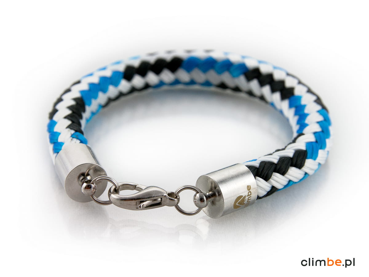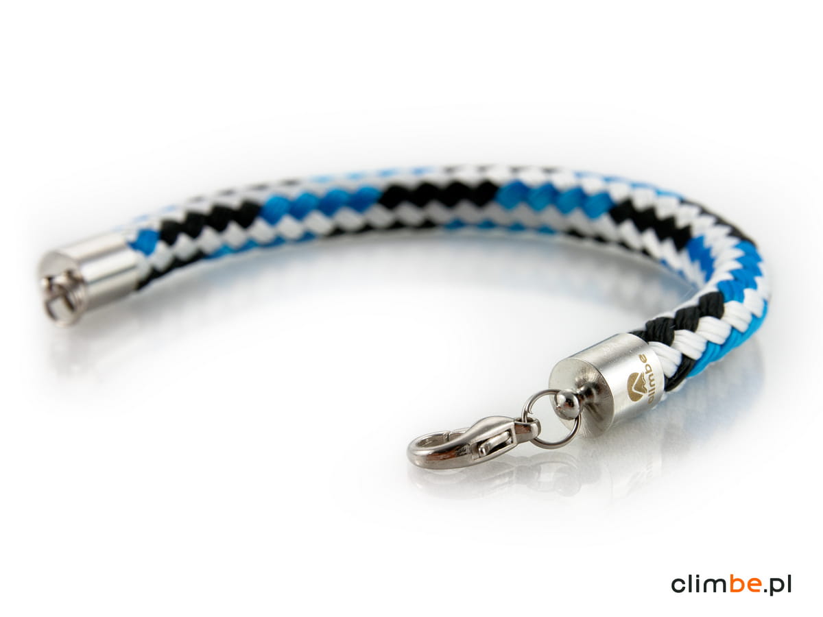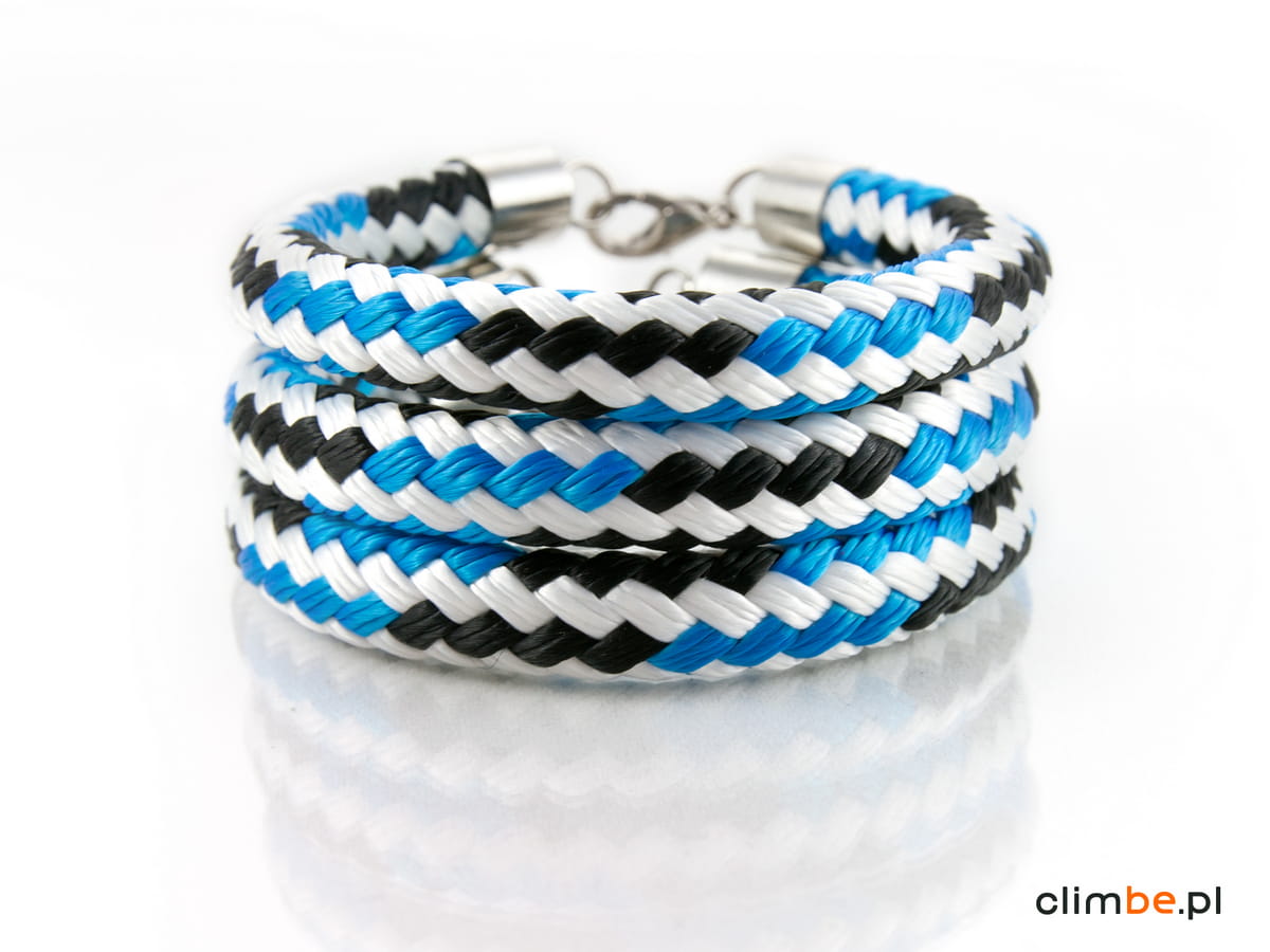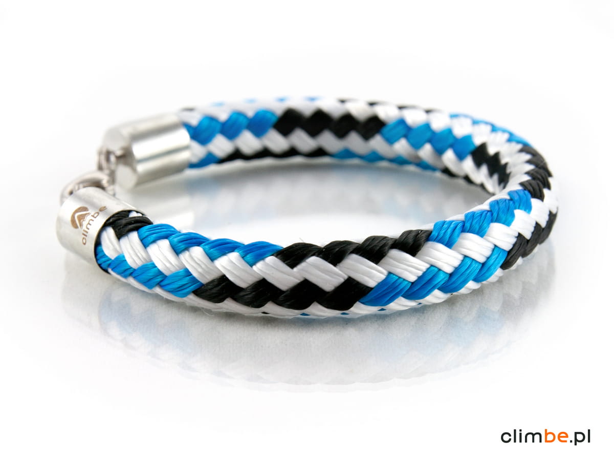 Bransoletka Climbe Jet Stream. Agresywna i wyrazista niczym prąd strumieniowy. Wykonana z liny żeglarskiej o średnicy 8 mm. Wyposażona w zapięcie z karabińczykiem. Bransoletka jest nowoczesna, elegancka i przełamująca wszystkie schematy. Zachwyca kolorem, kształtem i jest obiektem pożądania wszystkich miłośników dizajnu.