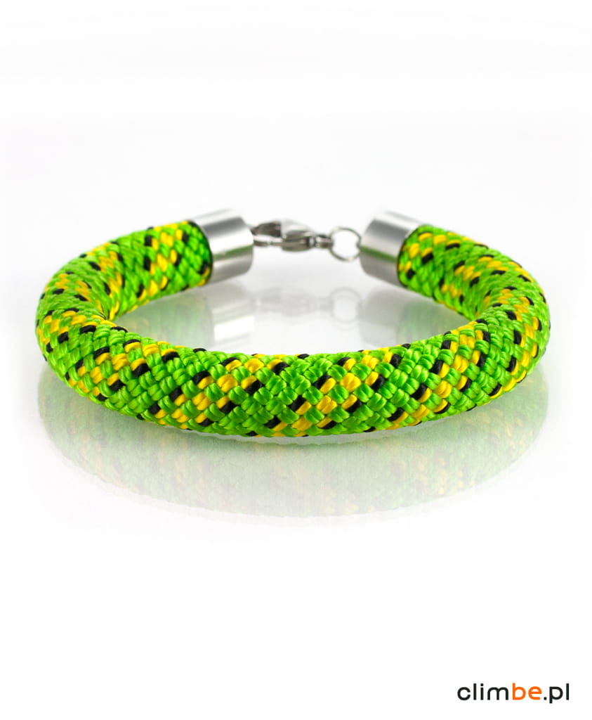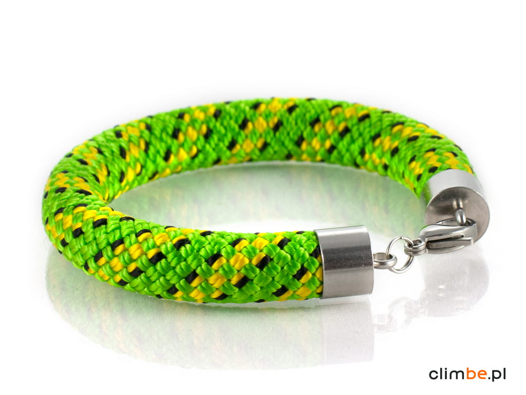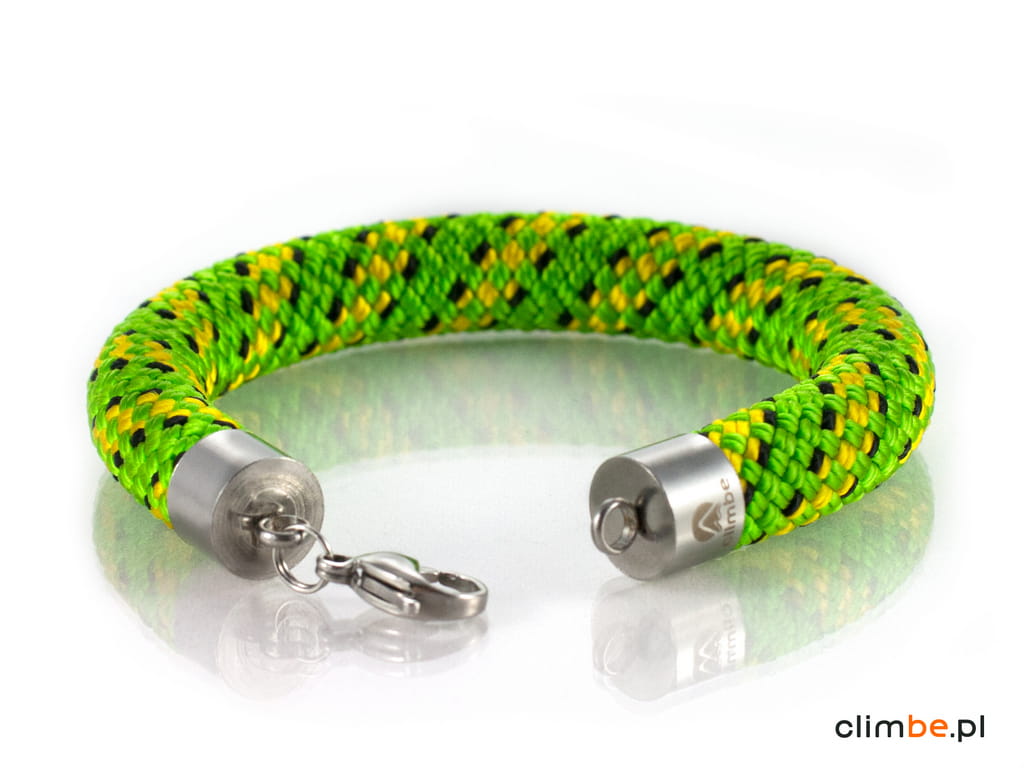 Bransoletka wspinaczkowa Climbe Georgia wykonana z przepięknej liny wspinaczkowej w kolorach soczystej zieleni. Wykonana z liny o średnicy 10 mm. Gruba, masywna bransoletka, która swymi kolorami nawiązuje do przepięknych krajobrazów słonecznej Gruzji, skąpanych w intensywnym, letnim słońcu.