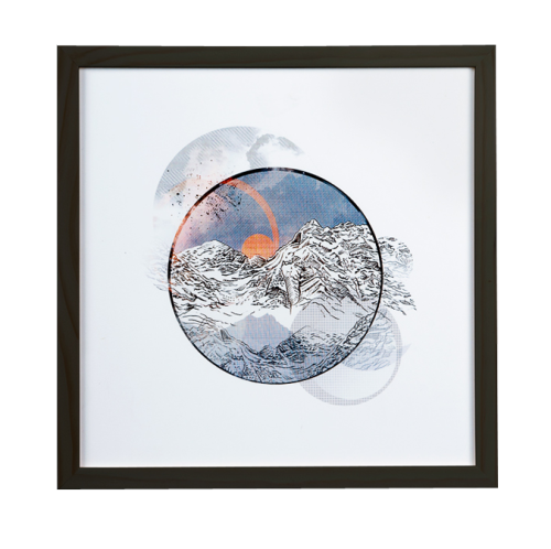 Brzask w górach, lecz bez lodowatych powiewów tatrzańskiego wiatru, bez przejmującego zimna, śnieżnych zamieci i zasypanych schronisk. Wariacje na temat poszarpanej grani Tatr - w pigułce, a raczej w ramce na ścianę. Z kubkiem gorącej kawy i w domowych pieleszach zapraszamy do Doliny Żabiej Mięguszowieckiej. Widok na grań Tatr, w luźnej interpretacji.
